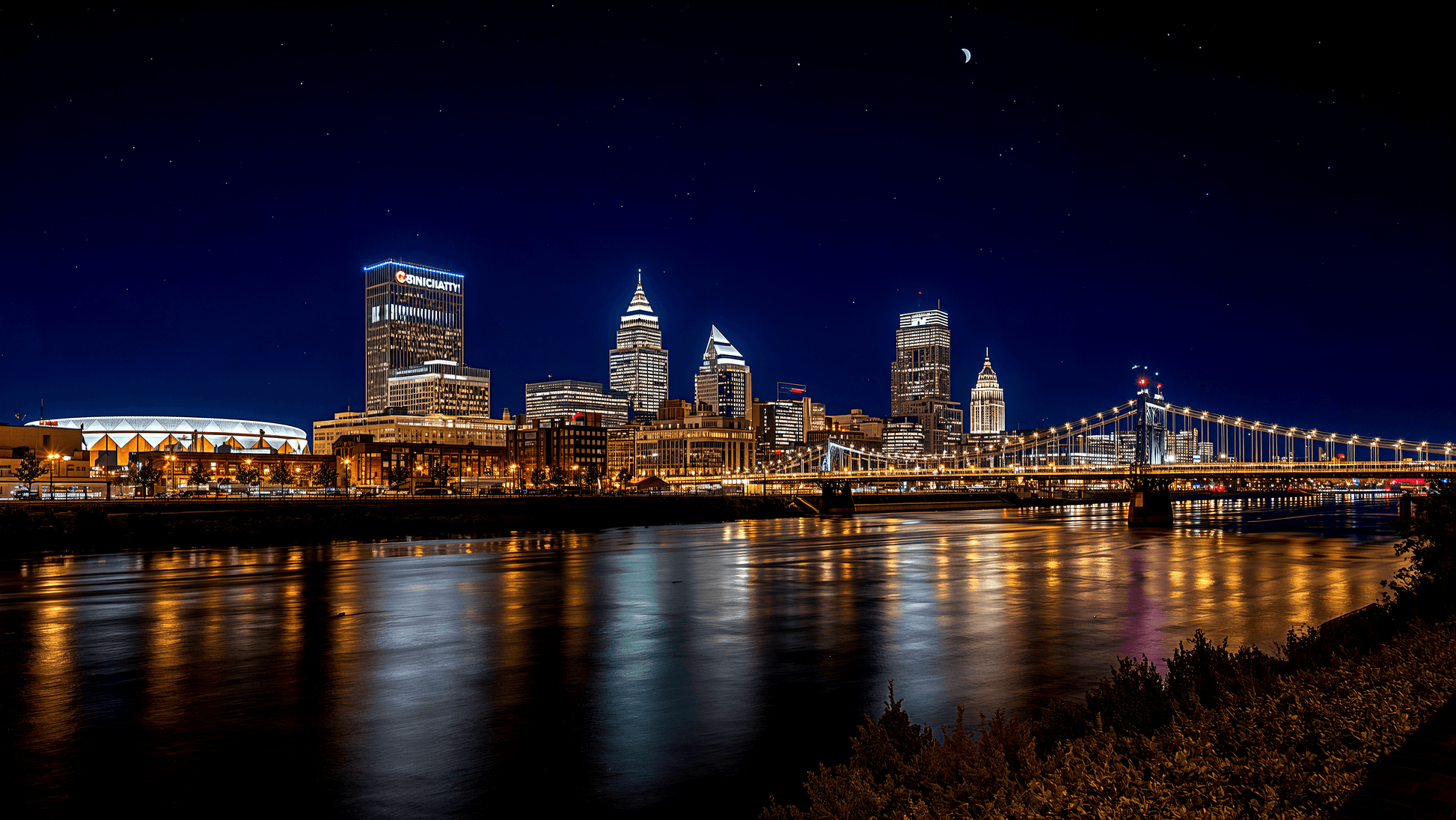 Cincinnati Skyline Night River View 009